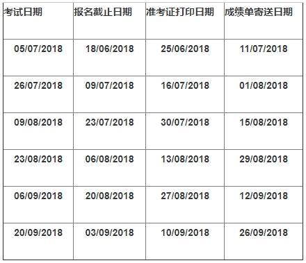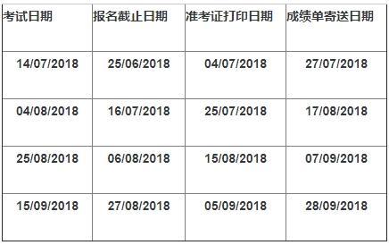 2018年7月至9月用于英國簽證及移民的雅思考試學(xué)術(shù)類(lèi)機考報名截止日期、準考證打印日期和成績(jì)單寄送日期