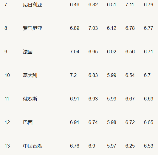 5. 2017年雅思A類(lèi)考試成績(jì)TOP 40的國家或地區